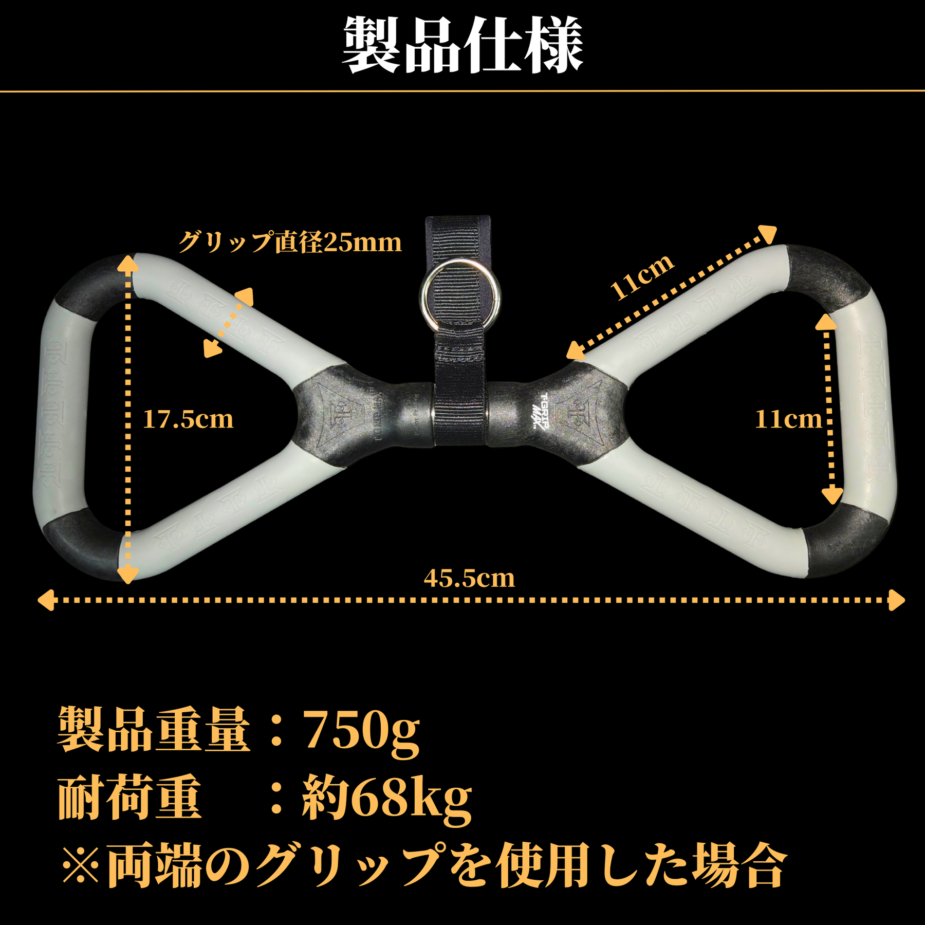T-grip MAXXトレーニングハンドルは、軽量、高強度、持ち運びやすさ、そして使いやすさを兼ね備えたTGripバーの進化版です。MAXXは、オリジナルTGripバーの人間工学に基づいたハンドポジションをそのままに、あらゆるレジスタンスバンドやケーブルアタッチメントと組み合わせやすいハンドルを実現しました。