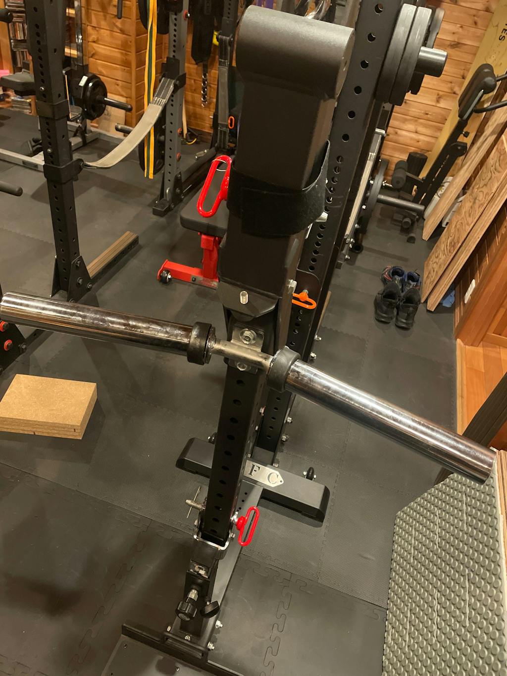 ラックアップの必要もなく、終わった後も手を離すだけでピタッとその場で止まるので一人でも限界まで追い込むことができるので素晴らしいです。取り付けは慎重に行う必要があります。特に本体とコントロールバーを繋ぐバネは破損しやすいので注意が必要です。私は取り付けの際、バーベル保護のためにラバーシートをカットしたものをバーベルに巻き付けてから本体とバーベルを固定しています。またロープとバーベルのローレットが摩擦で抵抗を受けるため、養生テープを巻いて滑りをよくしています。これは必ずやっておく方がいいと思います。やっておかないと長いこと使っていくうちにロープも擦れて傷んでくると思います。あとは、私は15kgのバーベルを使用していますので装置を取り付けると、中途半端な重量になってしまいますのでアドオンプレートを装着して概ね20kgからスタートできるようにしています。ダンベルセーフティスポッターと同様に買って良かったと思える製品です。