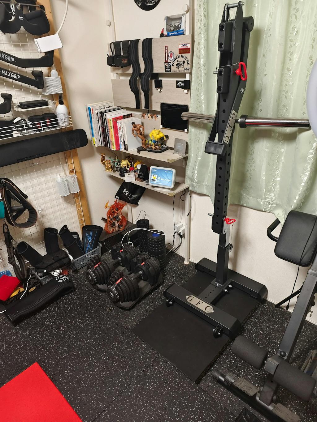 昔はダンベルとベンチだけでホームジムしてたけど、本格的に筋トレを趣味にし始めたらジムに行きたくなり、ジムトレニーになって早十年近く。 自宅の引っ越しなどしながらジムを転々としたけどどのジムにも、マナーを守らない輩はいて筋トレを嫌いになりかけてたので、再度ホームジムトレニーに帰ろうと思って色々器具探してたのですが、このgfcさんの本格トレ&コンパクトを追求した姿勢に感銘して購入!