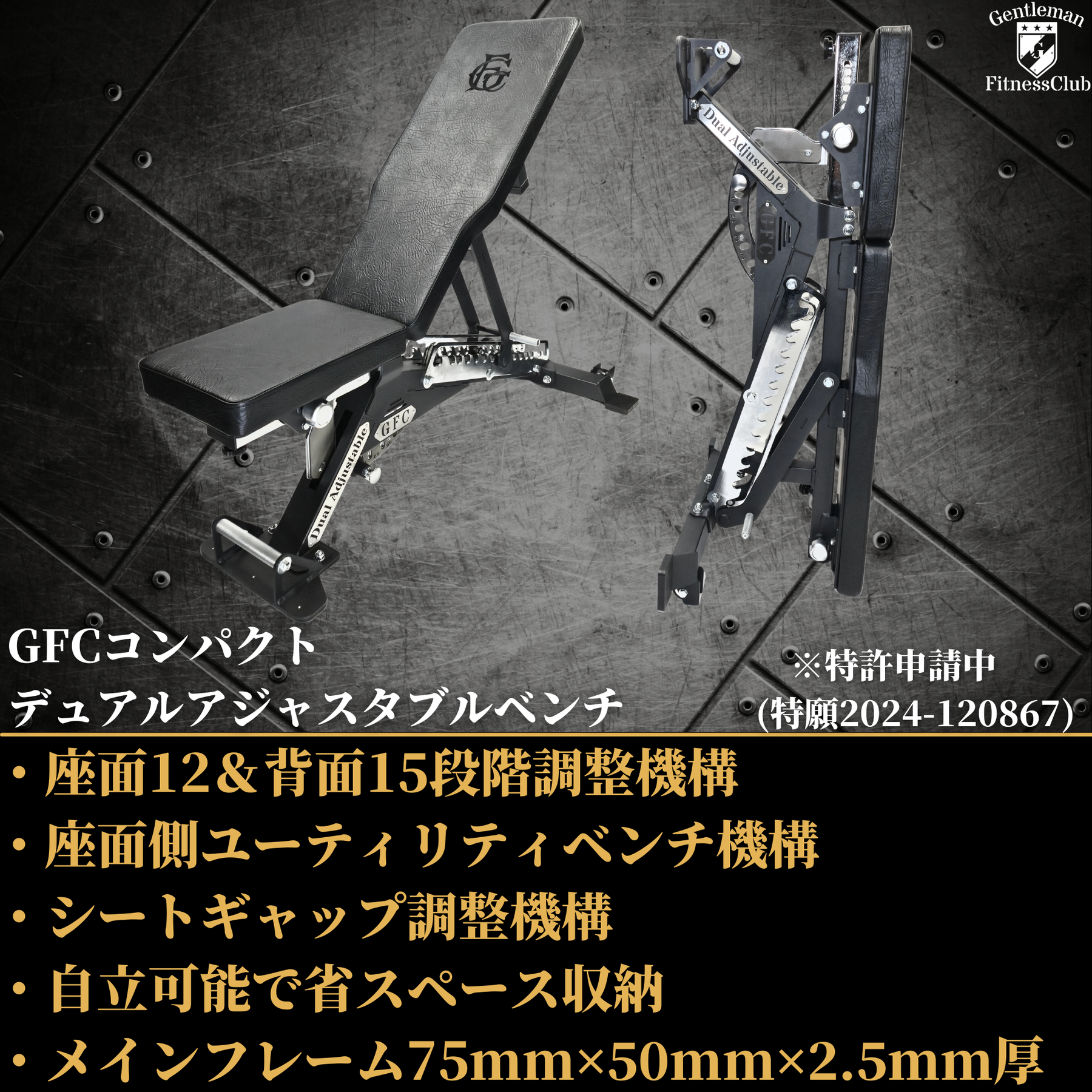 座面12&背面15段階調整機構(※特許申請中)を搭載した本格仕様の今までにない革新的なアジャスタブルベンチ