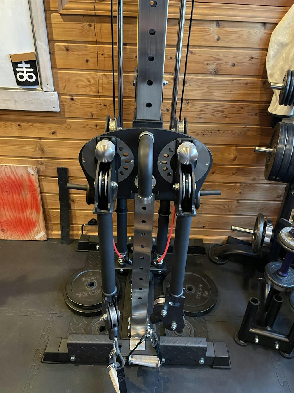 ホームジムのスペースが狭く、ケーブルマシンの設置は難しいと思っていたところ、こちらの商品を見つけ購入させていただきました。