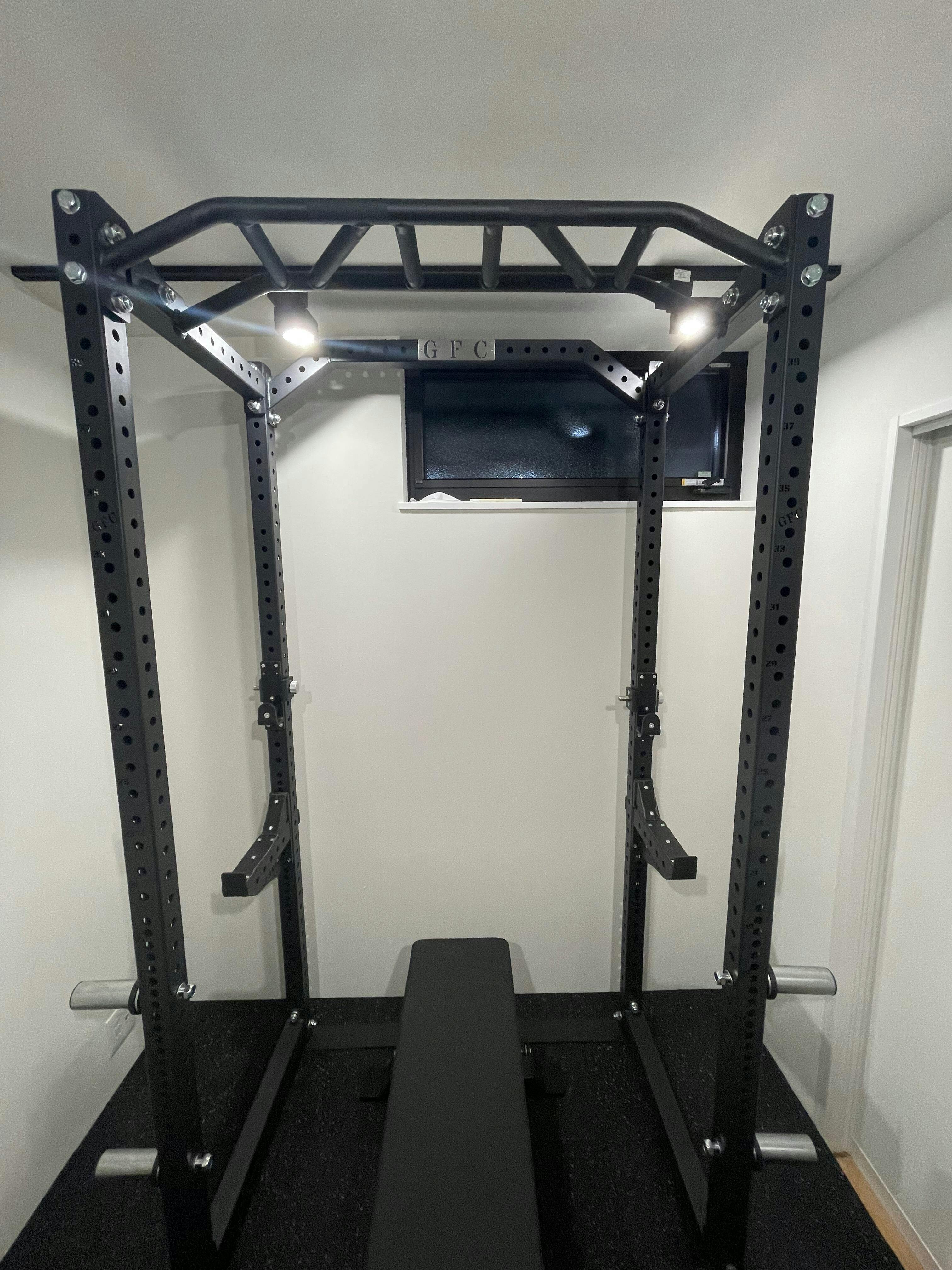 他社でもパワーラックを売っているブランドは幾らでもありますが、ここまで省スペース且つオプションのある製品はGFCしかありませんでした。